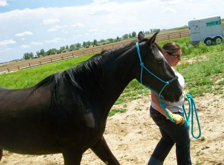 The funny thing is, because it's heavier than her rope halter, she thought that she was "attached" to me by the halter and did some great at liberty work. Who was I to tell her she wasn't attached?