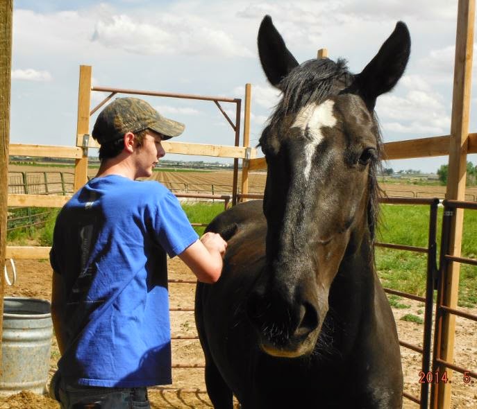 Digger was with us all afternoon and wanted to spend time with her, so he got out the brush and curry comb and gave her a mini spa day. He might be her new favorite human. I brush her quickly, like we're getting ready for a ride. I guess years of saddling lots of horses in a very short period of time has made my grooming a bit matter-of-fact. If Skeeter had been a cat, she would have been purring with Digger. He took his time and just enjoyed being with her.