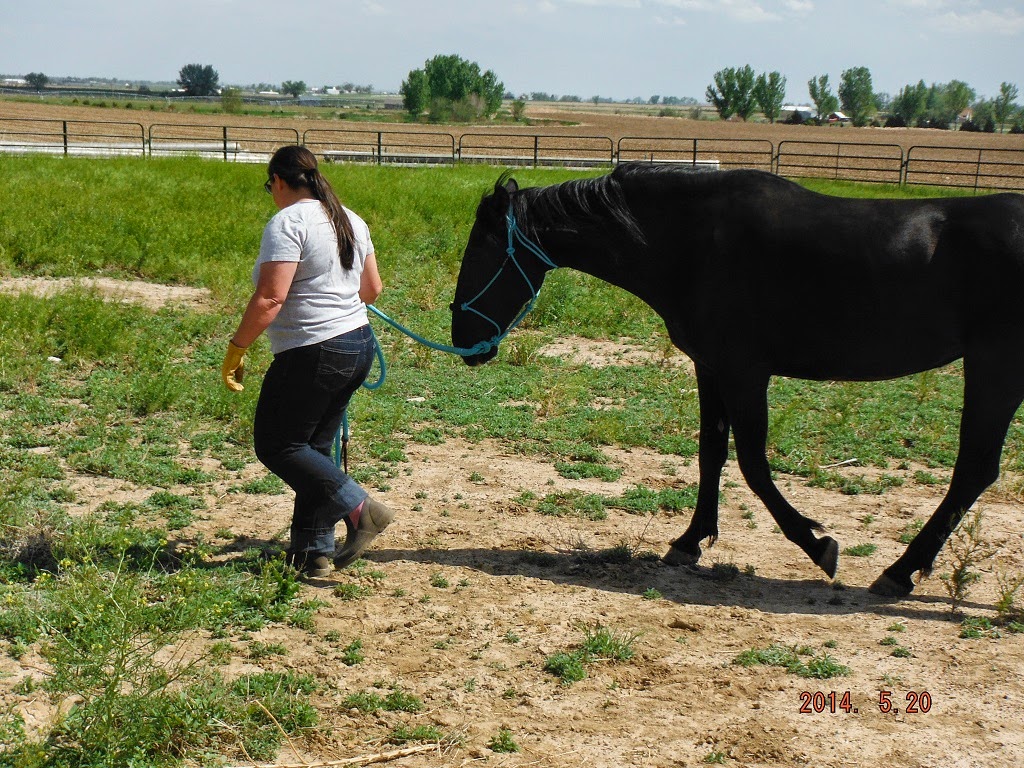 What do you mean I can't eat the green stuff while we're working? I handed her off to Bill, who took a turn leading her around.