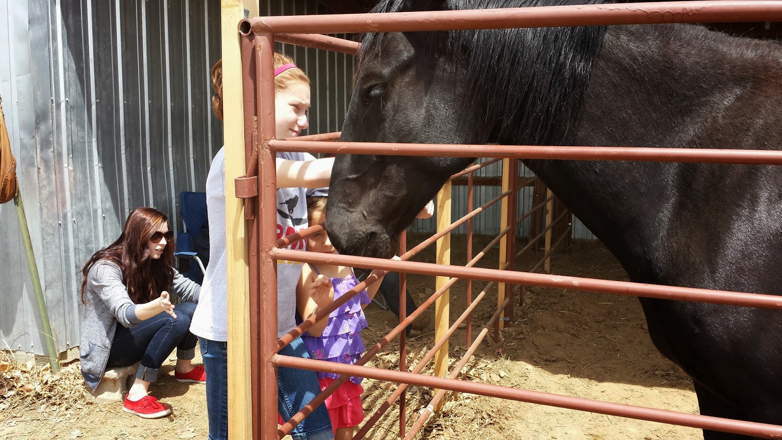 I like my brother, Mom.I thought we were done. After all, Skeeter had a really big day. We did a lot and she had a lot of new experiences. But as we were getting ready to leave, Mom remembered she had her weight tape in her vest, so back into the holding cell I went. Mom called out a warning that the fluttering tape might be an issue. Skeeter and I just laughed at her, as Skeeter stood like an old seasoned horse through the whole thing.According to the tape, Skeeter is 14.3hh (I had eyeballed her at 14.2hh, so close) and 902# (again, I had guessed 900#). I'd better start doing yoga or something so I'll be flexible enough to mount her from the ground if I ever have to.
