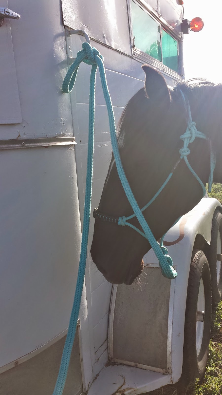 I was pleasantly surprised yesterday when Jay handed me a bag from his mom. I honestly thought she was sending me food (his mom is an excellent cook), but when I opened the bag, I found a beautiful new halter and lead rope.