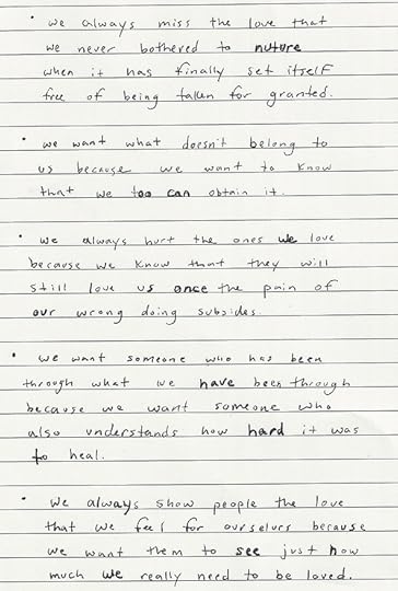 We miss each otherbecause we don’t want toforget about the feelingthat we used to thinkwas so...