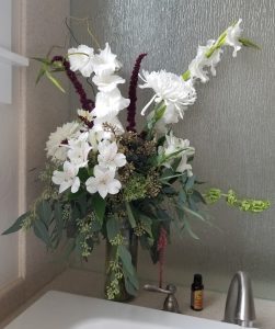 while soaking, I had set a bouquet of flowers next to the tub, unaware of the