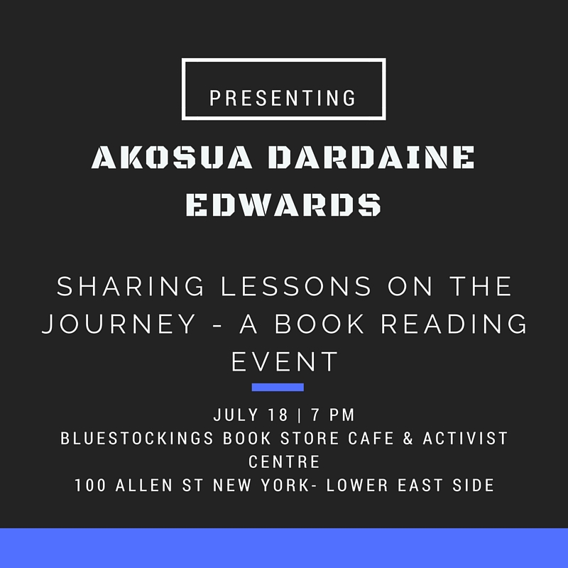 I think it will be the last time I fuss about what is for me!The Fair was a great experience, I met a few authors, I am having one of my readings with the lovely Miss Sapodilla on Wednesday who was at the book fair.I met a lady from Uganda and we shared a lot of memories and stories- she bought the book as wellAnd so , the end of Day 4 I was a happy author!Tonight I will be reading at Bluestockings 172 Allen Street New York 10032Come on downPeace