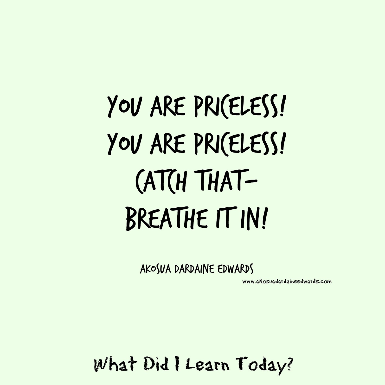 I suggest you do the same, speak to yourself lovingly, accept the awesomeness of who you are, and know that you are priceless!
