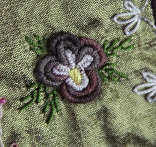 For those of you that have taken classes from me, it is no secret, I LOVE bullion embroidery! Every single crazy quilt project I do includes some type of bullion embroidery. I thought I would write this post so that you would be encouraged to add a little bullion pizzazz to your quilts! Pictured above is a bullion embroidered pansy that I did several years ago, and of course, I thought it was so much fun!
