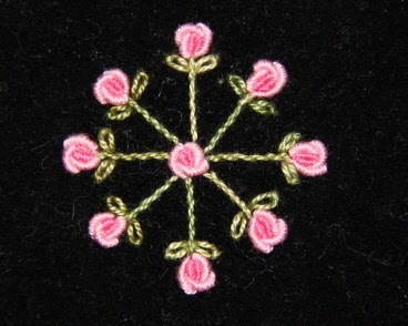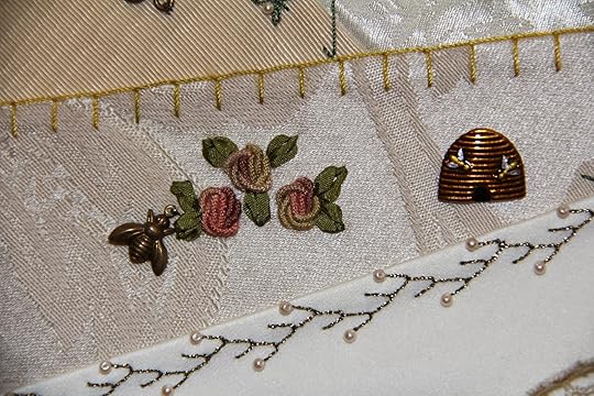 Bullion embroidered roses were used here to create a little scene, adding a bee and a bee hive.