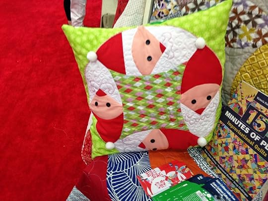 Last minute, I stopped by the booth where Victoria Findlay Wolfe was doing a demo. I just loved this pillow she made using her new double wedding ring die cutters.