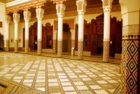 The 60D (US$8) ticket for the medersa also gives us access to two other tourist attractions in the area, the second of which is the Qoubba Almoravide. This is the oldest building in Marrakesh dating to the 12th century and is a classic example of Almoravid (an early Berber dynasty)architecture. Qoubba roughly translated means ‘dome’ and it is the decoration inside the dome that is most appealing. It is believed that this building was the ablutions area for the Ali Ben Youssef mosque. Last on our list of places to visit is the museum of Marrakesh located in the beautifully restored Dar Mnebhi palace. The palace itself is a good example of classical Andalusian architecture. Yet again there is a beautiful central courtyard with fountains, alcoves, beautiful geometric patterned tile work and elegant ceiling carvings. The museum holds exhibits of both modern and traditional Moroccan art, including an excellent series of photographs depicting Berber and Moroccan life during the 19th and 20th centuries. Moroccan art and architecture is simply superb.