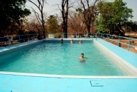 From Tambacounda we drive southeast to Parc National du Niokolo-Koba, a UNESCO World heritage site. The main critter I’m hoping to photograph is a hippopotamus. Apparently the best place to observe wildlife in this park is at an area called Simenti, which is located in the heart of the park. It’s a tortuous 90-minute drive through the dry savannah to reach the Simenti hotel, which is perched above a bend in the Gambia River. The river and a nearby watering hole offer the best possibilities for wildlife viewing and photography. However, it’s not the proximity to wildlife that makes the Simenti hotelso appealing, but rather the tempting prospect of an upgrade to an air-conditioned room (at least between 7 pm and 1 am), which comes with that most decadent of all Western inventions, a sit-down toilet. The hotel swimming pool is simply icing on the cake. Quick, where do I sign? Who do I give the money to? I think I’m in heaven.