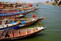 Christi and I decide to explore downtown Bamako, although even getting there is a nightmare. We cross the wide shallow Niger River via the Bridge of Martyrs. All manner of humanity and pollution-belching vehicles (notably mopeds, motorcycles, cars, and trucks) zoom past at chaotic speeds. It’s amazing there are no accidents, especially for those people stupid enough to walk.