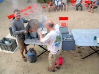 We have plenty of time to ponder our dish because the rest of the day is taken up with a long coastal drive north to Saint Louis, which lies only a stone’s throw from the border with Mauritania. Our campsite for the next few nights is the Zebrabar on peninsula Langue de Barbarie, some 20 km south of Saint Louis, but right beside the ocean. While Christi puts up our tent, John Malkovich and I set to work preparing dinner, ably assisted by Thelma and Louise, Sinead O’Connor, and latterly Christi. Either I’ve suddenly become very popular or the rest of the group really fears for their dinner.