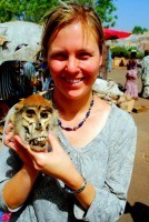 Bamako also has very few street signs, so the map we were given by the good folks at the Sleeping Camel is only as good as the guesses we make. More by luck than judgement we find our way to the Place des Martyrs and then bear north-east along what we think is the Boulevard du People. This street is lined with market stalls, meaning that we have to walk on the road, which remains chock-a-block with traffic. The people of Bamako clearly have places to go and people to see and they don’t appreciate it if you stop for a moment to consult a map. The pace of life is frenetic; people are constantly in our faces, eager to be on their way or eager to stare at us. Either it is disconcerting as Christi and I are relieved to finally reach our intended destination, the fetish market. The market is smaller than I’d expected, just a few stalls selling mostly dried animal parts (notably heads, paws, hoofs, skins and tusks). There are also bits of bird, monkey, snake, dog and warthog to peruse. Supposedly these items are very important for use in a variety of traditional medicines, although we confine ourselves to a few photos.