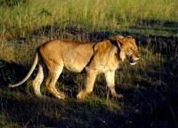 We stop twice on our journey out to the Maasai Mara. Once for views over the rift valley (in which the Mara lies) and the second for lunch in Narok, the largest town in the area. No one (apart from me that is) appears in a rush. Part of the reason is that access to the reserve is granted in 24-hour blocks. Although we arranged a 4-day safari, we only have a 3-day pass for the Maasai Mara. Having said that, I am surprised to see wildlife roaming the route to the Mara (giraffe, Thomson’s gazelle, wildebeest, baboons, and zebra to name but a few). Another point that maybe Christi and I should have clarified with Jocky Tours is that our permanent tented accommodation is not actually in the reserve. The way it is described in the brochure makes it sound as if it is, but just to let you know it is not. Instead the Rhino Tourist Camp lies a few minutes outside the Oloolaimutia Gate. Our tent is built onto a concrete base and split into two sections. The front part houses two beds, while the discretely concealed rear of the tent hides a tiled bathroom with sit-down toilet and shower with hot water. A generator provides power between 6 pm and 10 pm to charge the batteries in those fancy cameras! I have no idea where George and Mathew sleep, although Mathew snags a section of a communal dining area for Christi and I to eat (and somewhere hidden from view is a shared kitchen. Apparently, Mathew brought all the food that Christi and I will eat with us from Nairobi). So the things that man control, such as food and accommodation, works well. Spotting wildlife is a whole other story.