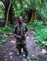 Much of the landscape on our way to Ruhengeri, the nearest town to the national park, is rugged peaks. Yet even under these difficult circumstances agricultural terraces are common. Almost as common in fact as the groups of young boys we meet. They all appear happy and excited to see us. I didn’t know I had that effect on people. It couldn’t be Christi and her blonde hair could it? We also complete a scenic loop of beautiful Lake Burera before finding our way to La Palme Hotel in Ruhengeri. It’s another tourist hotel, but in our present penurious state it seems magnificently luxurious to Christi and I. Although there is no guarantee we will find the Mountain Gorillas tomorrow, we go bed full of nervous excitement like children on Christmas Eve.