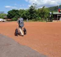 Another frustrating day in the socialist nirvana that is Venezuela. Things normally work out here, but only with extravagant effort. First, our laundry barely arrives in time for us to checkout. Second Miraye was able to get us on a bus to Puerto Ordaz, but it’s another night bus (and according to Miraye not a very good one). Next Ya-Koo wants to charge us 200 Bolivars for yesterdays lunch; we think that’s outrageous and with Miraye’s help we get the bill down to 80 Bolivars. Miraye then very kindly drives us the 5 miles back to the border to get more Brazilian Real (although she is convinced the ATM, which is inside the bank, will be closed since it is Boxing Day). Fortunately the ATM is accessible and I take out R$1000; Christi grabs another R$500. We hope this will be sufficient cash to get us through the rest of Venezuela.