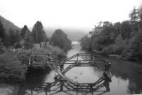 It’s wet and windy as we embark upon our tour of the Lake District. We’re doing the Seven Lakes tour (Nahuel Huapi, Espejo, Correntoso, Traful, Falkner, Villarino, and Hermoso). Our guide, Alfonso, is an interesting fellow: he’s middle-aged with died black shoulder length hair tied back into a ponytail. Although he can speak English, he insists upon conducting the tour in Spanish (gee, thanks). He’s wearing a turtle neck sweater, sunglasses (where’s the sun?), tight leather pants, and lots of jewelry. He looks hung over and mostly naps, but occasionally he rouses himself for a brief commentary in a sultry Latin voice. The bus driver also seems keen to keep the tourists quiet by turning the heat up to Sahara levels. Mostly we doze, therefore, and whatever beauty the Lake District has to offer is largely obscured by fog and misty rain.