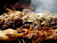 Tired after the sleep-deprived bus ride from La Rioja, we easily succumb to a siesta – as does the rest of Mendoza. Of course when we wake up we’re starving and we head out to dinner at the ridiculously early hour of 7.30 pm. We waste some time wandering through the trendy university/restaurant district along Av Colon/Aristides Villanueva, before settling on a family-run parrilla (grill) called La Barra. Even though we don’t arrive till 8:30 pm, there is only one other couple there. The ambience at La Barra (old world French farmhouse with wooden platters) is fantastic and the matambre de cerde (a huge piece of grilled pork) that Christi and I share is simply delicious. The gastronomic adventures begins well – Christi is very, very happy. Tomorrow we embrace enology.
