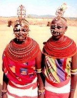 The Samburu are semi-nomadic pastoralists, living in Northern Kenya. They are closely related to their more famous counterparts, the Maasai who live in the Southern Kenya. The Samburu are heavily dependent on cattle (sheep, goats, and camels are also raised), since their diet is based on milk and occasionally supplemented by blood taken from the cows (who are not killed during this practice). The Samburu diet is supplemented with roots and vegetables, while meat is reserved for special occasions.