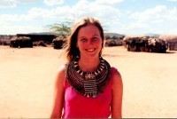 We leave the Samburu National Reserve (no more wildlife safaris for a while – shame!) and drive 26 km to a Samburu village near Archers Post. At the entrance to the village the married women greet us with a traditional dance. The female passengers aboard the Dragoman truck are encouraged to join in; Christi is horrified (she hates dancing in public!), but for once shuffles her feet in a vague dancing motion as her face goes as crimson as the cloth ‘skirts’ worn by the Samburu warriors. I try not to laugh as Christi squirms for a good 10 minutes before the welcome ceremony is complete.