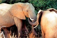 Late in the day we finally arrive in Samburu National Reserve. We drive to our campsite beside Ewaso Ngiro river, which not only feeds Thomson’s Falls but also an abundance of wildlife within the reserve. We begin, though, with the more mundane elephants and Nile crocodiles who appear to have little interest in one another. On the other hand the elephants do appear quite interested in each other. I’m not sure there is such a thing as elephant porn, but let’s just say some of these guys are clearly exhibitionists. Which is more than can be said for Christi and I after this long, hot, rough drive. All we crave is a hot shower and a good night’s sleep.