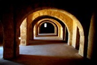 A short walk to the southeast brought us to the Grand Mosque and surprisingly us infidels are allowed in. Once again the place is deserted and there is little to disturb our solitude. The Grand Mosque of Sousse is a much more simple and somber affair than the grandiose Hassan II mosque in Casablanca. The Grand Mosque was built to accommodate the growing settlement of Sousse, not all of which could be housed in the ribat. This mosque lacks a minaret to summon the faithful to prayer, but it is believed the tower in the ribat was used for this purpose. We even get a good view of the dimly lit mihrab (prayer niche that faces east towards Mecca).