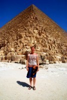 So here are the few simple impressions I have of the pyramids of Giza. First it truly is surprising how close to Cairo the pyramids are and how urban sprawl continues to edge closer to this the last of the Seven Wonders of the Ancient World. Second, oh my god there are a lot of tourists and a lot of Egyptians trying to sell them something. Some of the tourist trinkets on sale are utter junk and the Egyptian salesmen are by far the most aggressive I have ever encountered. If buying nick-knacks are not your thing then camel rides are available. The pyramids even have their own tourist police, which in theory protect tourists from the excesses of the merchants, the pyramids from the excesses of the tourists and everybody from potential terrorist activities. Still the police do still find time to run their own rackets, including posing with tourists for a backsheesh or tip. After ‘hello’, ’backsheesh’ is the most common word I hear. Once upon a time visitors could climb all over the pyramids, but that practice has been stopped due to the ongoing damage. Third, many of the tourists are Eastern Europeans (particularly Russians) on package tours (something we saw in Tunisia also). These folks dress as if they are at the beach all the time, which is a bit culturally insensitive in a Muslim country such as Egypt. I shouldn’t be at all surprised to learn in the future that Egypt had imposed a dress code on visitors to its cultural sites.