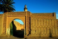 Tozeur train station is virtually deserted and Christi and I have no idea where to go. Fortunately a lone taxi appears out of the dust and takes us to our chosen hotel, the Residence Warda. Here we organize a rather special tour for tomorrow, but for the moment we use the little time left to us to explore this large oasis town. And there are no end of caleche (horse-drawn carriage) drivers willing to show you around. We succumb to temptation eventually (well it’s easier than saying no all the time). The palmeraie in Tozeur is massive and has been in existence for more than 900 years. Most of it has been sectioned off and ownership has historically been passed from one generation to the next. This is changing now, though as both large hotels and wealthy individuals are buying up and developing parcels of land. Our caleche driver engages in a little trespassing as he shows us what is hidden behind the tall fences. Not only are there palm trees, but stands of pomegranate, grape, and apricots. Vegetables (onions, courgettes, lettuce and tomatoes), roses and brightly colored bougainvillea also add to the fecundity on display. An intricate irrigation system was developed centuries ago to ensure the palm trees and other plants received sufficient water.