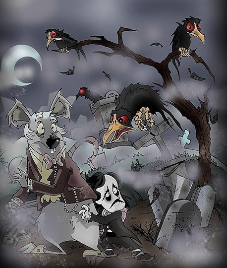 Check out this brilliant image by superstar artist, Tara Billinger! This is one of the very earliest images of Little Poe and Irving Rat. Notice that Irving started out as a much older character. Like a wise old rat, rather than the younger, swashbuckling Irving we see in The Imaginary Voyages of Edgar Allan Poe. Both are totally cool, don't you think?