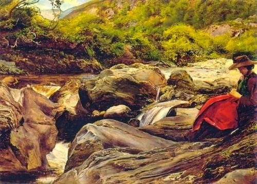 John Everett Millais, A waterfall at Glenfinlas (Effie Ruskin), oil on canvas, 1853This is not a documentary, but a costume drama drawn from cache of letters left by the Ruskins and the Grays. We could quibble about Effie’s insistence on drifting about Venice without bonnet or gloves. To many Victorians that would have been unforgiveable. However, the decision to leave Effie’s hair down – making her look girlish and vulnerable - for much of the film makes a dramatic point. When she decided to leave Ruskin, she smooths her hair and pulls it severely up and off her face. Her changed appearance is a sign of her determination and her ability to take control of her own fate.