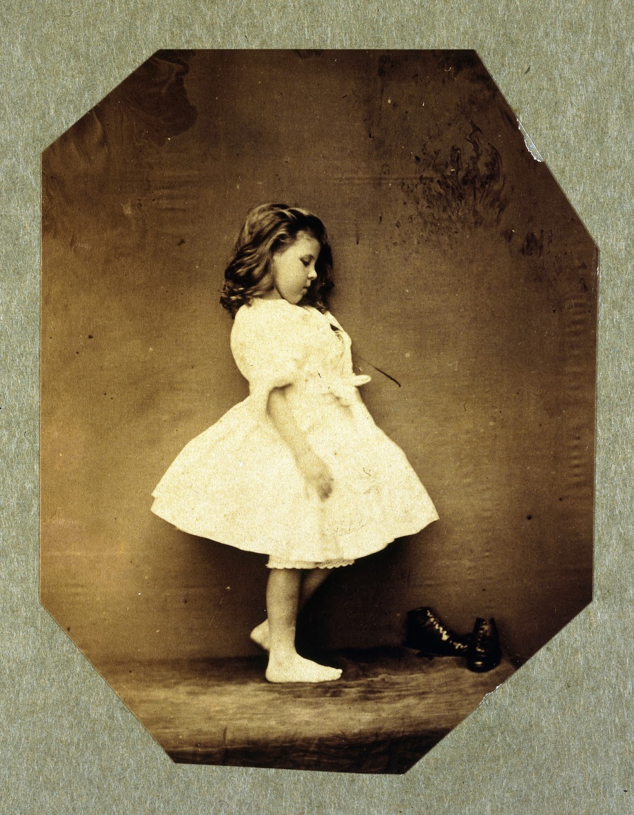Hawarden left no written record of her processes. We have to look closely at the photographs themselves to find clues to her working practice and her intentions. A portrait of young Clementina with stained fingers, and wearing a dark apron over her dress, demonstrates that making photographs was a messy business. [figure 2, V&A PH.457:319-1968]