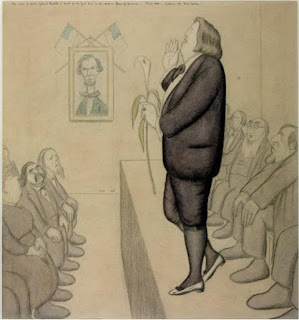 Max Beerbohm, The name of Dante Gabriel Rossetti is heard for the first time in the Western states of America, 1882, 1916, ‘Rossetti and his circle’, pubd. 1922