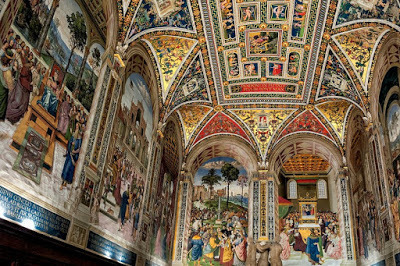 Piccolomini Library, decorated by Pinturicchio, 1402-7, Siena CathedralDante’s Divine Comedy was available in English, thanks to Henry Cary, but was still an acquired taste. Burne-Jones’ friend and fellow artist, D G Rossetti did not publish his translation of Dante’s ‘Vita Nuova’ and ‘The Early Italian Poets’ until 1861.