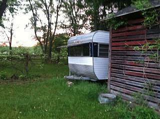 Last night was kind of scary, since I forgot my flashlight, the camper is a little bit of a jaunt across the very, very dark barnyard, and less than a mile or so away, I heard coyotes howling. It's too bad my romance is a contemporary one and not a historical western, because their "mood music" would have been perfect for background noise. As it was, though, it just gave me the creeps.