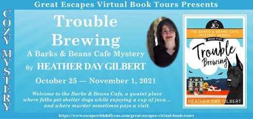 Blog Tour and Spotlight: TROUBLE BREWING (A Barks & Beans Cafe Cozy Mystery) by Heather Day Gilbert