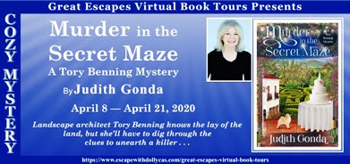 Judith Gonda is a mystery writer and Ph.D. psychologist with a penchant for Pomeranians and puns, so it’s not surprising that psychology, Poms, and puns pop up in her amateur sleuth mysteries featuring landscape architect Tory Benning.