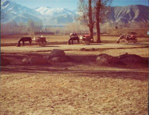 Jalalabad surrounded by trees and irrigated fields. Couldn’t get through border before sunset so camped on Afghanistan side. Didn’t bother putting up tent because so mild (and ground of the peg bending type!)