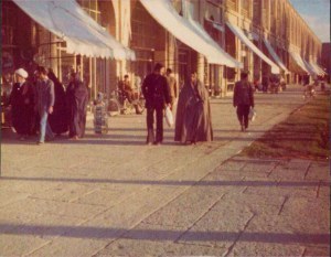 Got into Esfahan about 10.30. Drove up main boulevard – very wide street with rows of trees and paving down the centre with seats. Dropped in Shah Square outside Shah Mosque [now called Imam Square and Mosque].