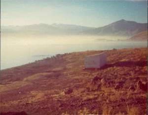 “Camped by Lake Van – deserted hotel right on shore. Very cold – ice on flysheet again.