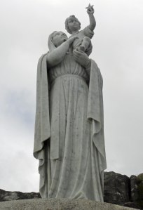 But Brian and Lesley sent me photos of a standing stone and a statue set against a craggy cliff – Our Lady, Star of the Sea – on the flank of Heaval, overlooking Castlebay on Barra – which were much more like the haunted edifices of my imaginings!