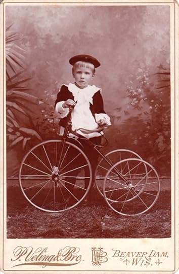 Photographer P. Veling & Bro produced this portrait of a boy and his tricycle. Note the clarity of the trike in this image. The child is dressed adorably and is wearing a wonderful hat. This studio photograph was taken in Beaver Dam, Wisconsin. The photographer, Peter Veling was born in Germany in 1855. He immigrated to the United States as a baby. He married his wife, Theresa, in 1881. He is listed as a photographer in the 1880, 1900, and 1910 U...