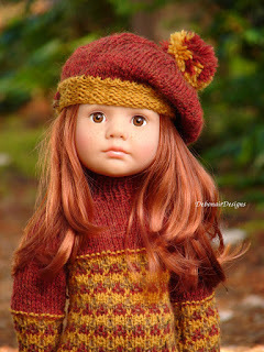 Color Me Fall~ a faux fair isle Sweater Dress by Debonair DesignsPDF knitting pattern for slim all vinyl Gotz dolls