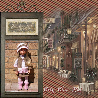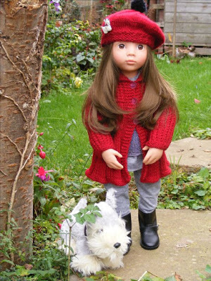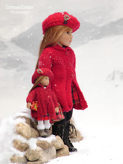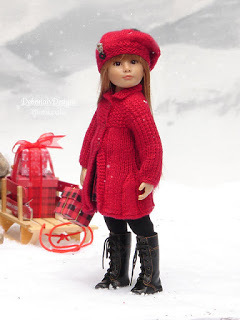 I have begun with working holiday coats using one of the patterns, Braemar featured in the Kalendar Kidz Publication for what will become a year long endeavor to showcase each month's featured design modeled on my slim Gotz Happy Kidz and Hannah girls, beginning with December's theme:
