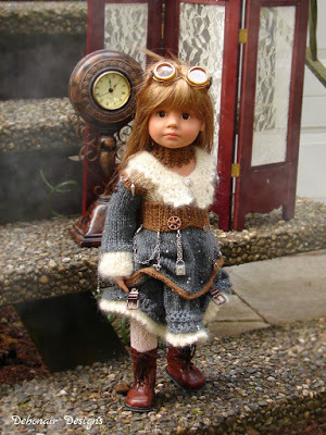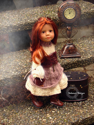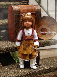 Inspired by the trendy steampunk styles, I took the adventure myself and paired together two of my patterns along with extra modifications to create a timeless ensemble I thoroughly enjoyed, here is my Gotz Happy Kidz Katie model to show and tell