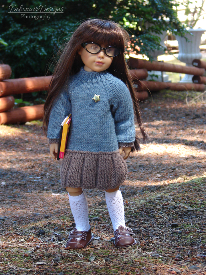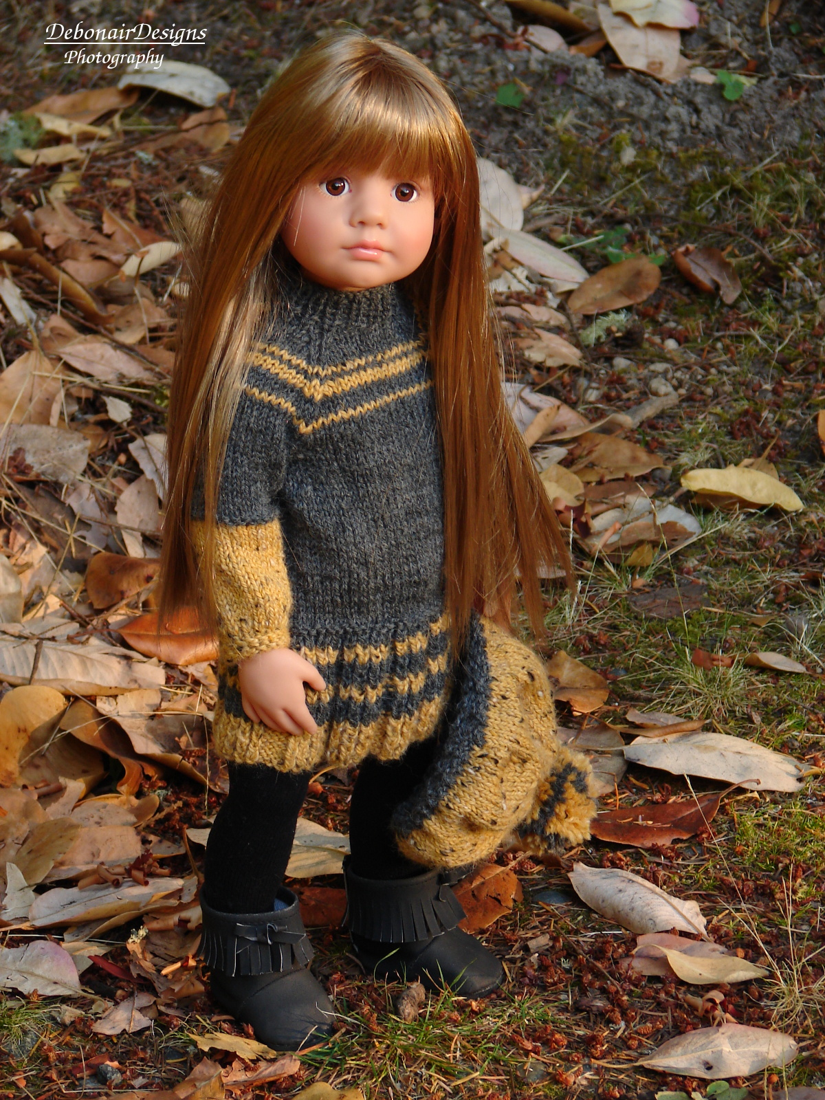 Color Me Fall~ a faux fair isle Sweater Dress by Debonair DesignsPDF knitting pattern for slim all vinyl Gotz dolls
