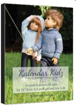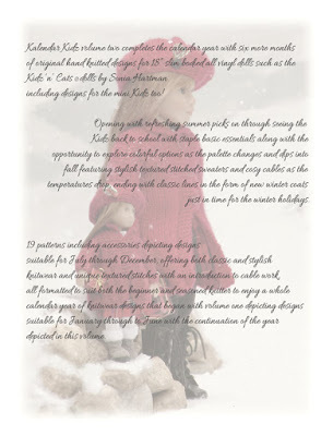 Special Edition of Kalendar Kidz volume two includes designs for the mini Kidz too and completes the calendar year with six more months of original hand knitted designs for 18" slim bodied all vinyl dolls such as the Kidz 'n' Cats dolls by Sonia Hartmann