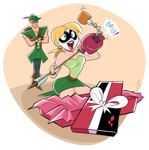 Oliver Queen giving a special gift to Harley Quinn (or possibly Harley GREEN, or Harley QUEEN)