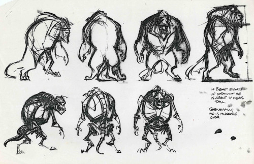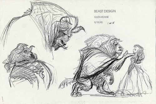 Glen Keane’s character studies and model sheets for Beast from Disney’s Beauty and the Beast (1991).