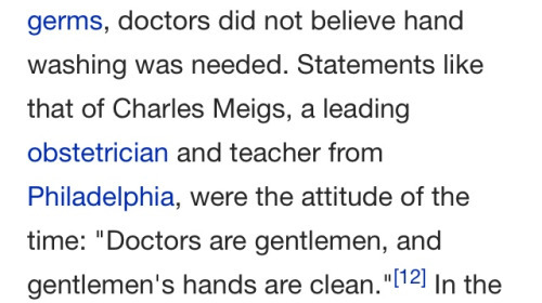 Victorian era surgeons didn’t wash their hands and found the suggestion that they should wash their hands offensive.