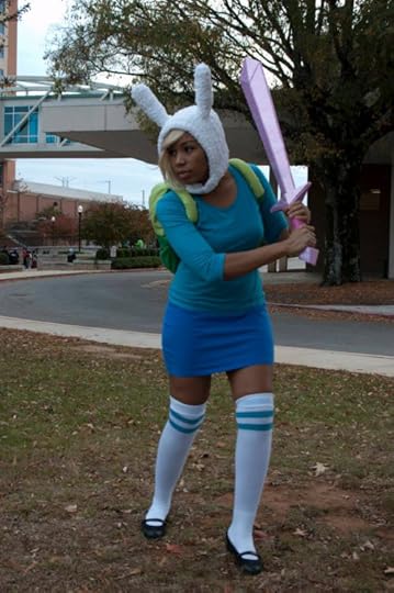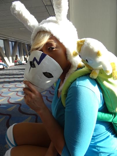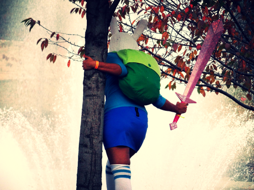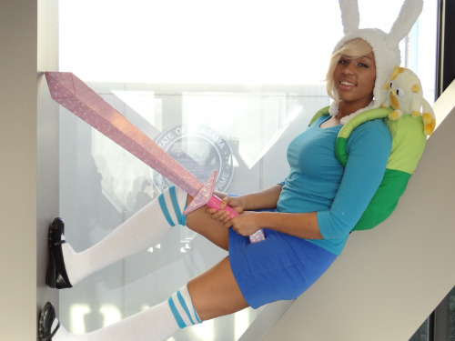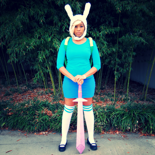 Coplaying Fionna from Adventure Time. I made the hat (crocheted), the backpack, clip in bangs, and sword. What time is it?!